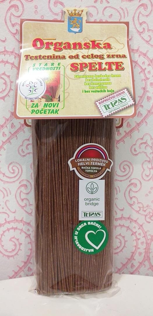 Organska Testenina od Spelte celog zrna – Špagete PG Sabolč Tružinski Zemlja porekla: Srbija Količina: 400g