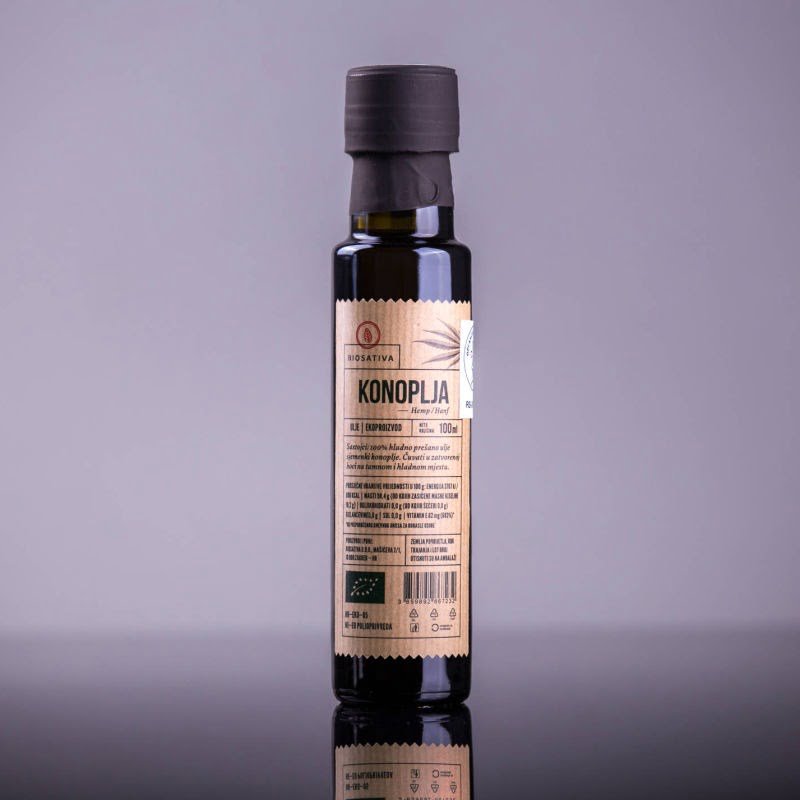 Organsko Ulje Konoplje izuzetno je zdravo jer pomaže kod regulisanja telesne težine, redovnom upotrebom snižava loš holesterol do 65%, ima jaka antioksidansna, antimikrobna i protivupalna svojstva. Zemlja porekla: Srbija. Količina: 250ml