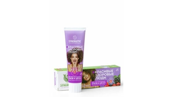 Synergetic Ekološka Pasta za Osetljive Zube Bez Fluora Jagoda i Menta – NE SADRŽI: fluor, SLS, SLES, parabene,saharin, triklozin, dioksid titan. Količina: 100g